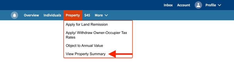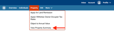 Roll mouse over to ‘Property’ on the third menu bar from top