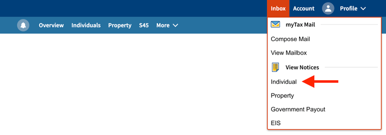 Roll mouse over to ‘Inbox’ on the first menu bar from top and click ‘Individual’ under View Notices